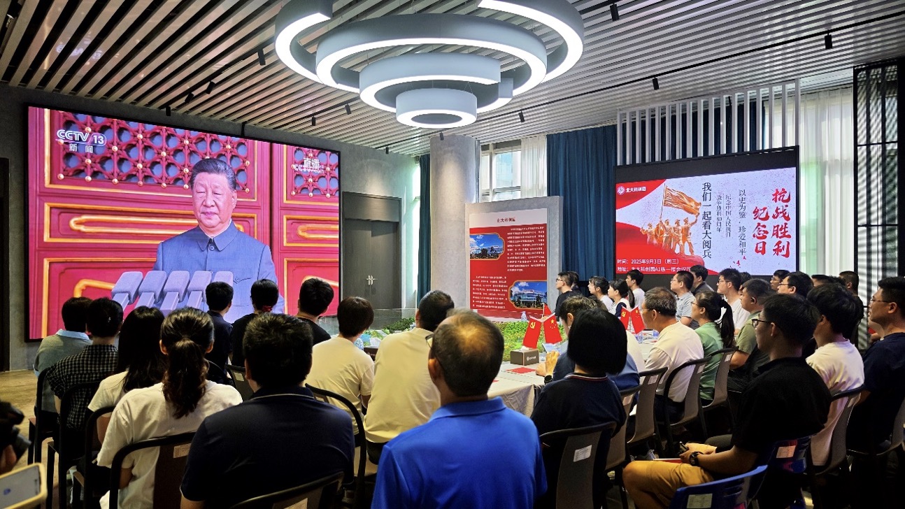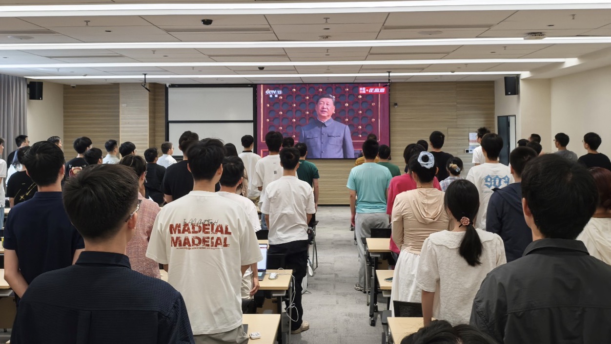 组织全体师生党员分别在主会场C303报告厅、南山智园及科创园分会场集中观看了在北京天安门广场隆重举行的“纪念中国人民抗日战争暨世界反法西斯战争胜利80周年大会”现场直播。