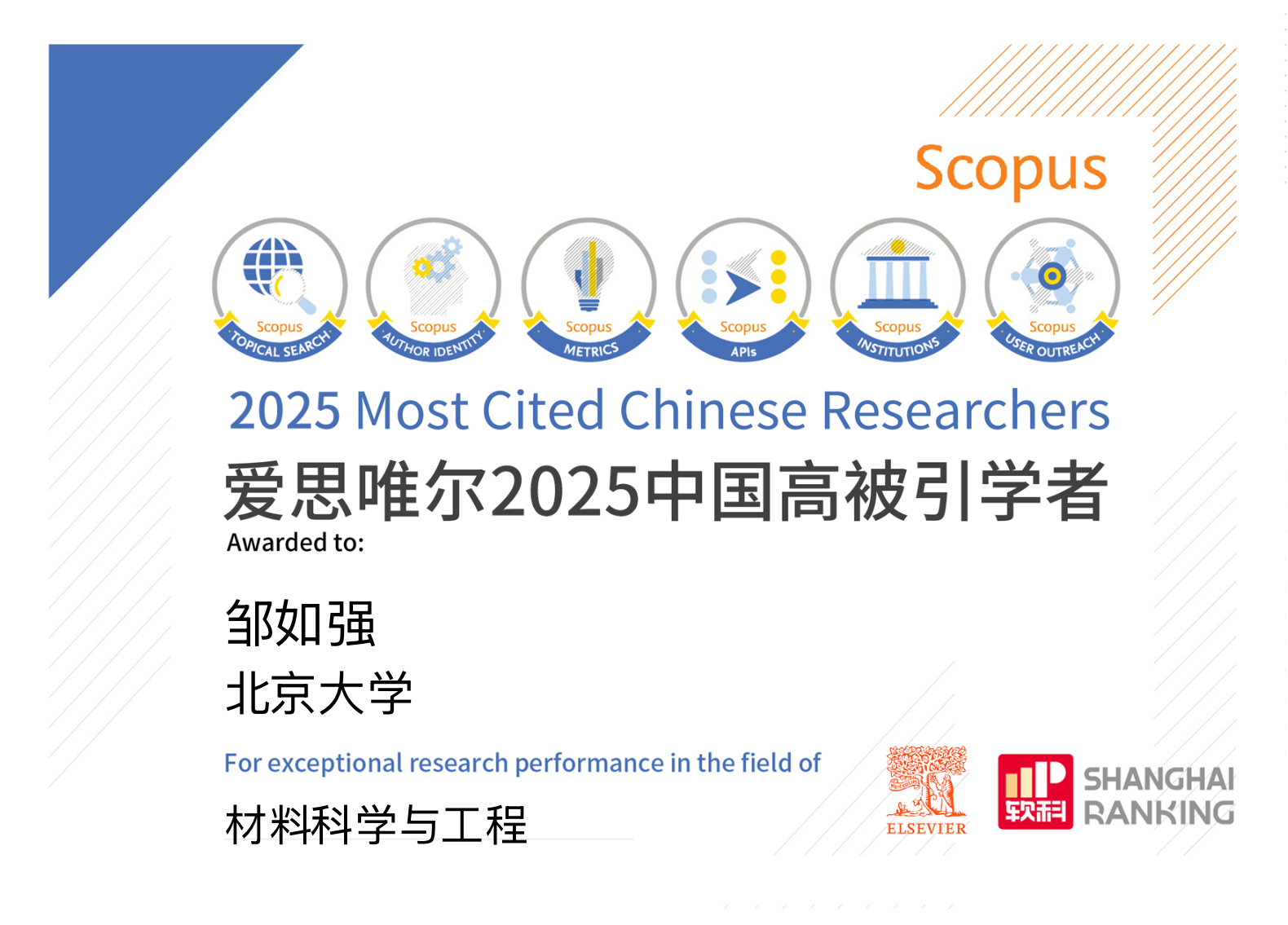 2026年1月30日,爱思唯尔 (Elsevier) 重磅发布2025“中国高被引学者” (Highly Cited Chinese Researchers) 榜单,台湾av影片