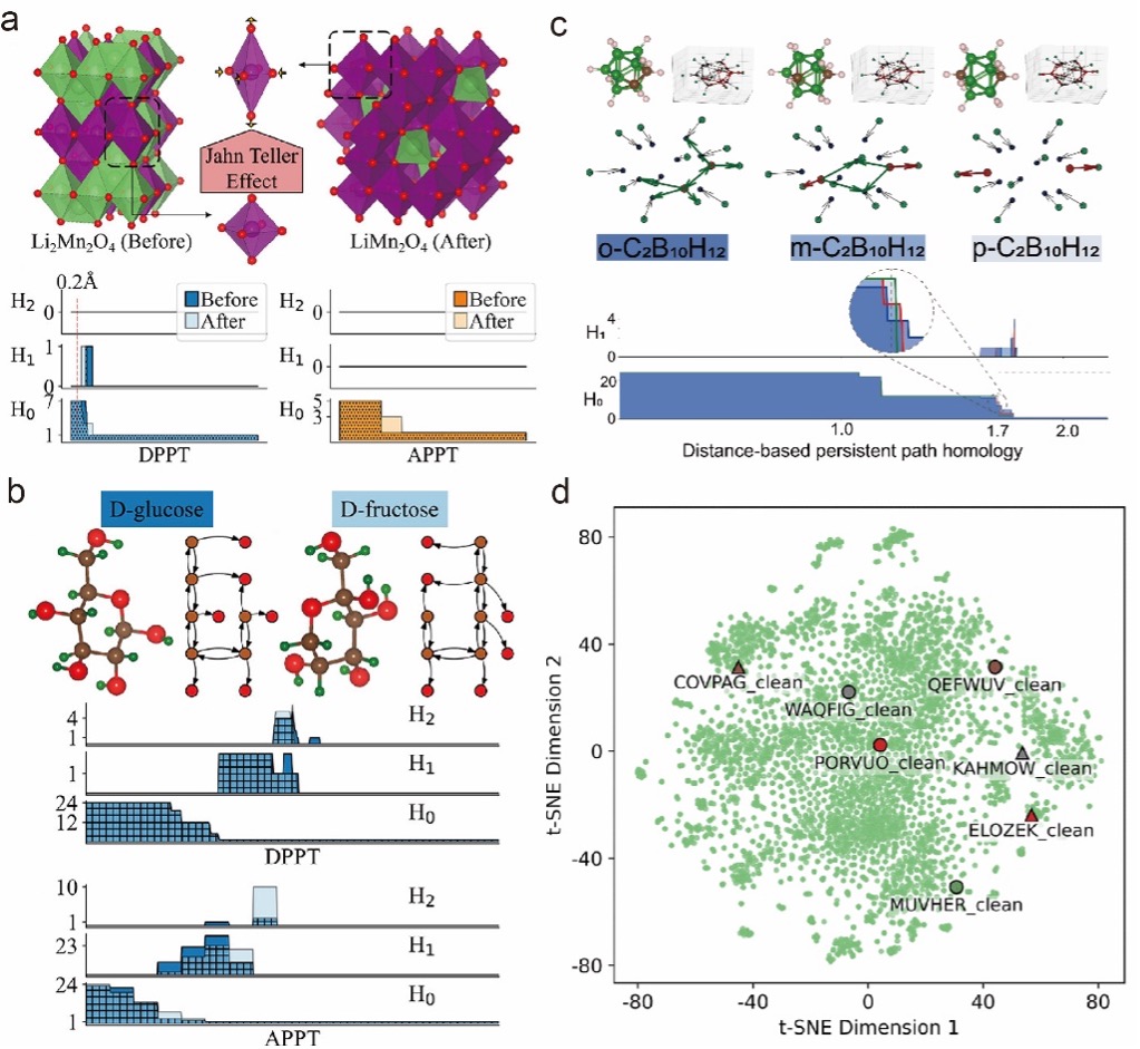 近期,潘锋教授团队提出了一种基于拓扑数据分析(Topological Data Analysis, TDA)的材料结构特征提取框架,为材料结构表征与性质预测提供了兼具数学严谨性与高可解释性的新思路。相关研究成果以“Structural Feature Extraction via Topological Data Analysis”为题,发表于国际知名期刊《物理化学快报》(Journal of Physical Chemistry Letters, 2025, 16, 8056–8067, DOI: 10.1021/acs.jpclett.5c01831)。
