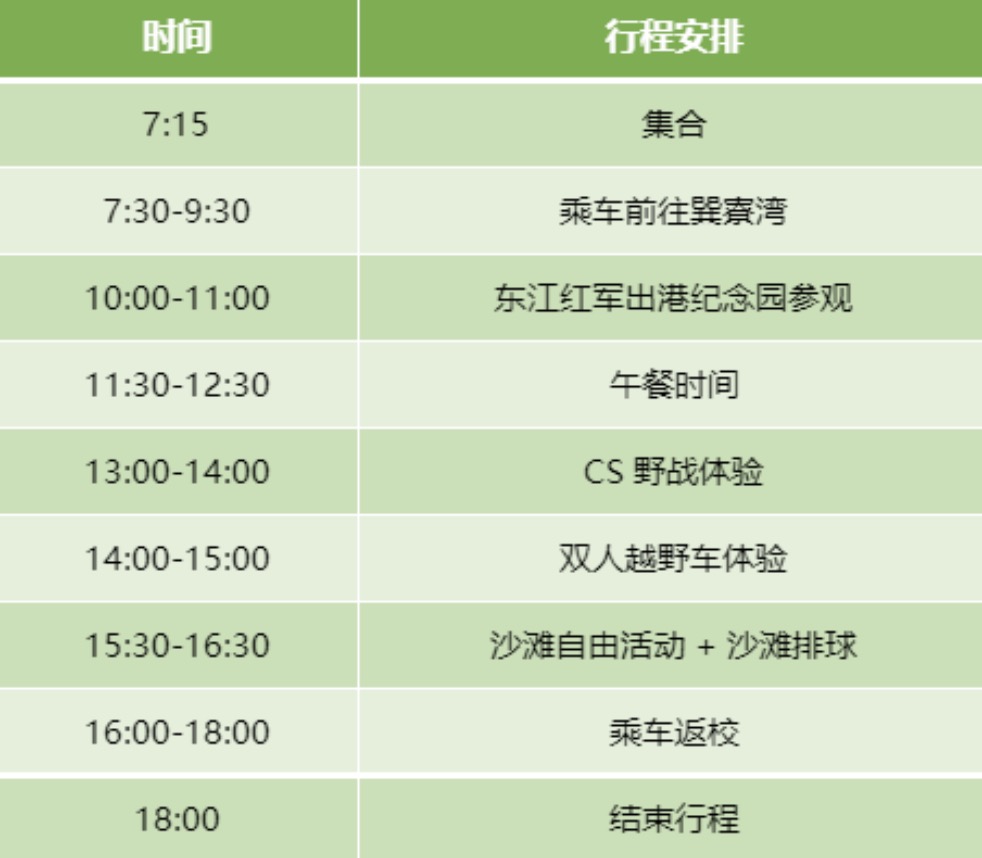 2. 行程中包含约2小时车程(单程),建议容易晕车的师生谨慎报名并提前配备相应药物,以备不时之需;
